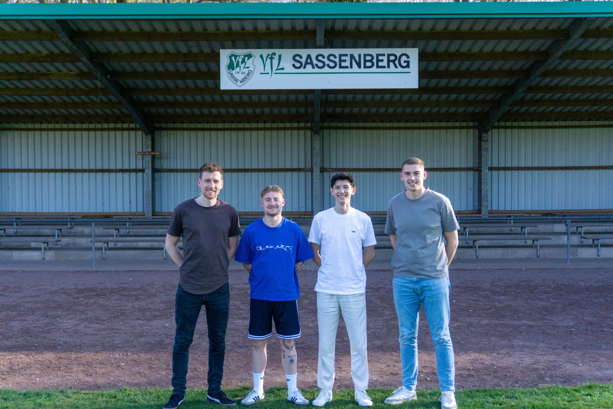 Mit Leon Redecker (2.v.r.) und Tobias Kramp (2.v.l.) werden ab dem Sommer zwei aktuelle Spieler der SpVg Versmold unser Wappen auf der Brust tragen.